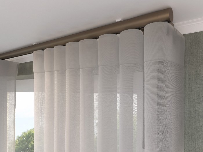 Ervaar de verfijning van een gordijnroede met het comfort van elektrische bediening.